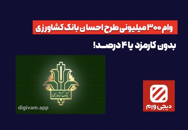 وام طرح احسان بانک کشاورزی | تا سقف ۳۰۰ میلیون تومان و کارمزد ۴٪